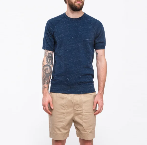 Canadian company Reigning Champ releases this simple short sleeve crew neck sweater in mid-weight french terry from. Typical of them, it has all the quality you’d expect. Features raglan sleeves, reverse flatlocked seams, ribbed collar, woven label on side seam, ultra-soft loop knit inner, and contrast stitch on hem and under arm.